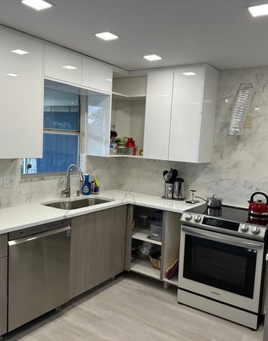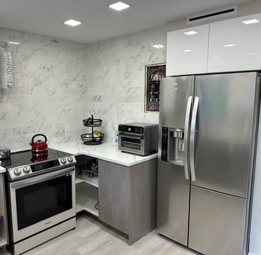 A fully remodeled kitchen with improved layout, modern finishes, and high-quality materials.